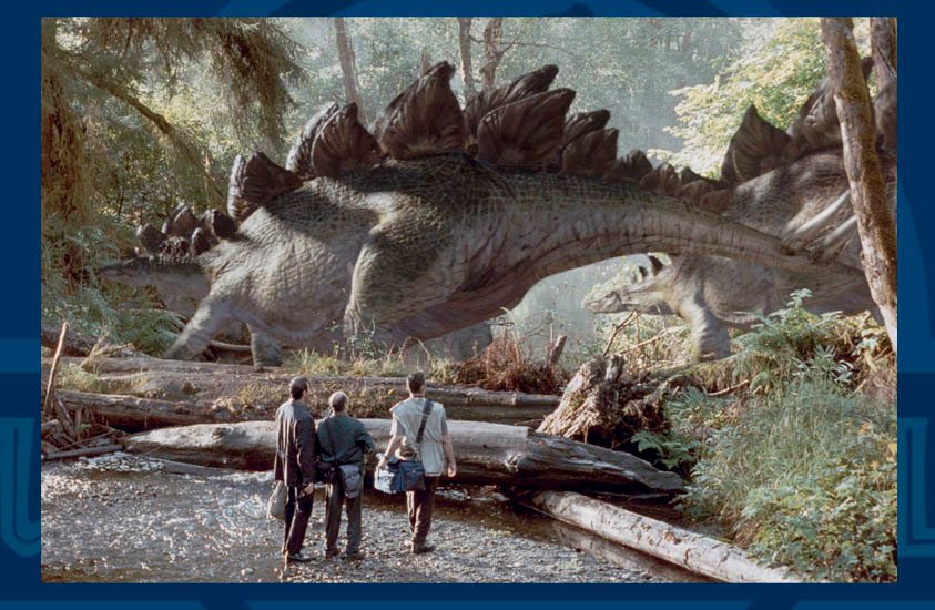 Grupo de Stegosaurus en Isla Sorna. El Mundo Perdido: Jurassic Park. UCS & Amblin.